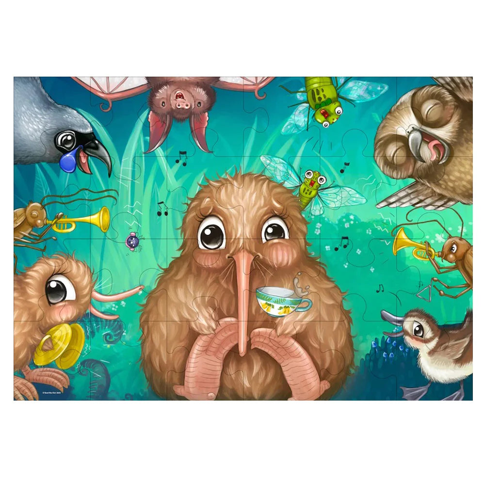 This 24 piece floor puzzle features an illustration from the bestselling and award-winning Kuwi's Rowdy Crowd book written and illustrated by Kat Quin (Merewether).